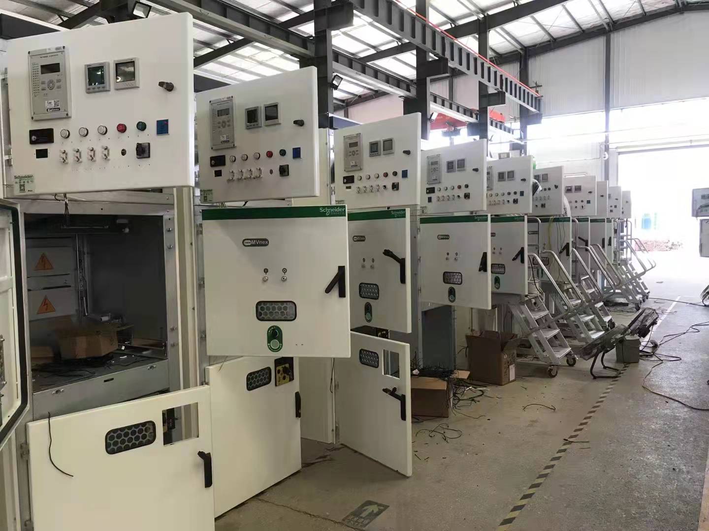 该项目涉及有MVnexHP高压配电柜、直流屏等不同种类和型号设备近百余台(套)。生产计划下达后,特别是受疫情影响,公司从元器件的采购、产品检验、物流配送等环节科学筹划。分三个批次完成了设备配送及施工安装工作,据悉,12月14号已完成了全部产品的联调联试。